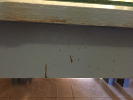 Tisch im zweiten Zimmer mit Blut