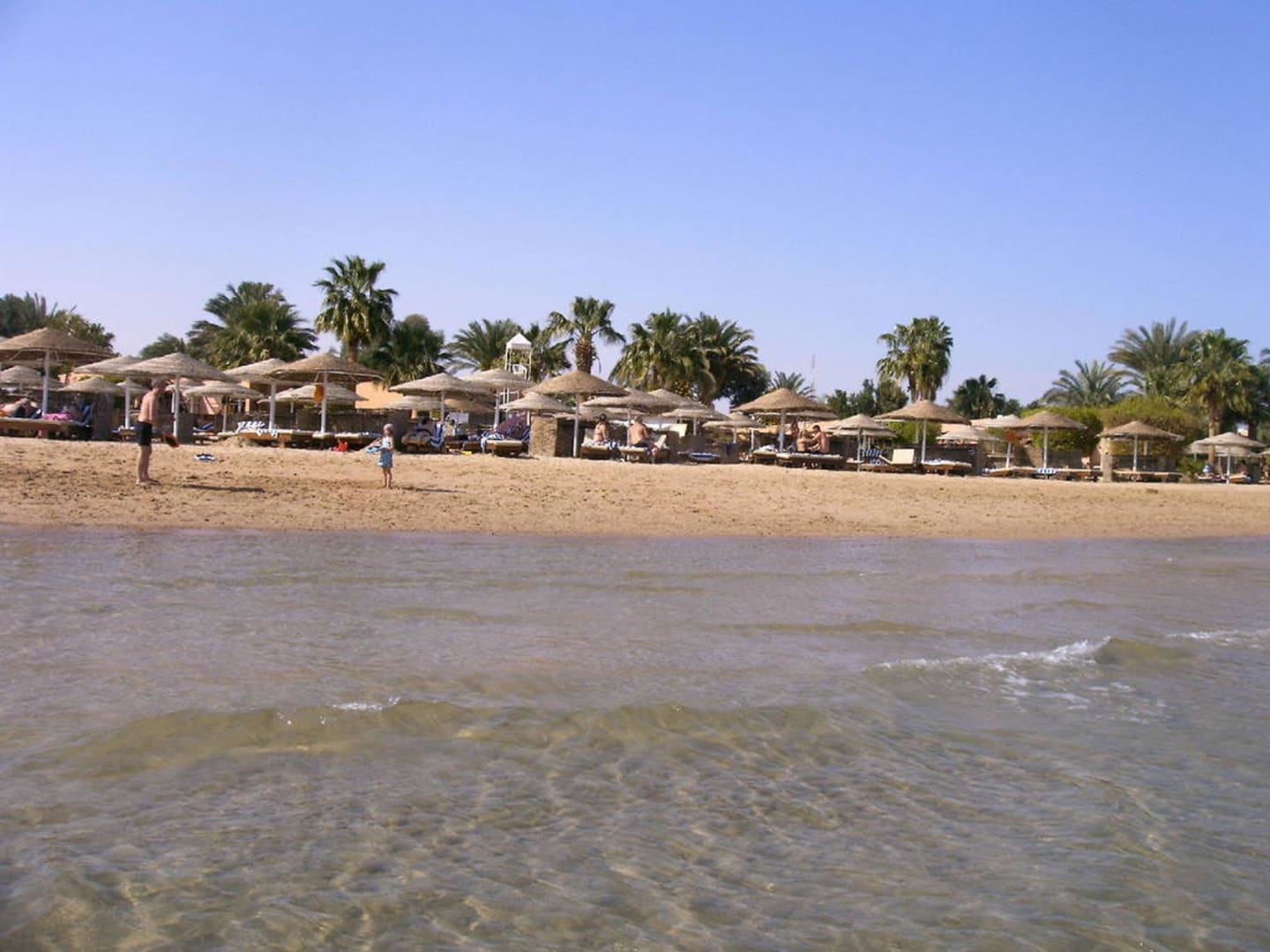 Blick zum Strand mit den Füßen im Meer