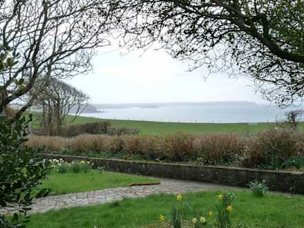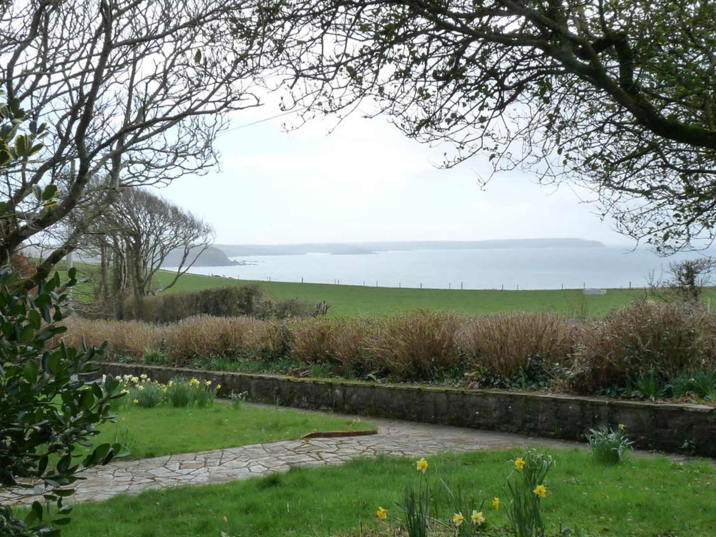 Blick vom Garten aufs Meer