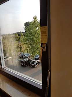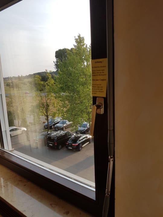 Blick auf den Parkplatz vor dem Hotel!