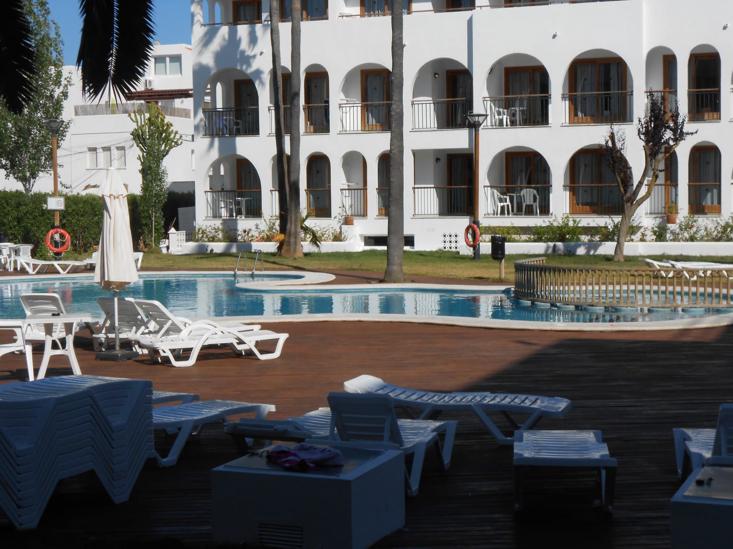Blick vom Zimmer auf den Pool