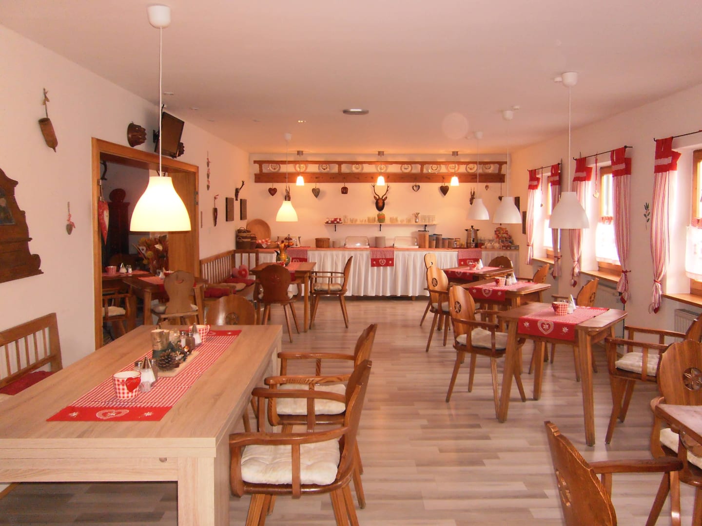 Der neue Frühstücksraum mit Büffet