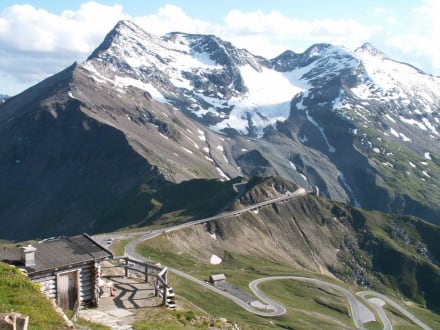 Ausblick und BlockhütteAussicht von der Terasse der Edelweisshütte aus. Man sieht ausserdem links eine kleine Blockhütte, die man auch mieten kann