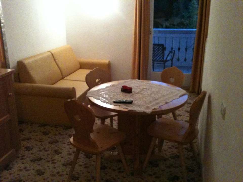 WohnraumFoto Wohnraum zur Bewertung von Doris & Michael. Der Fernseher befindet sich gegenüber der Tischgruppe.