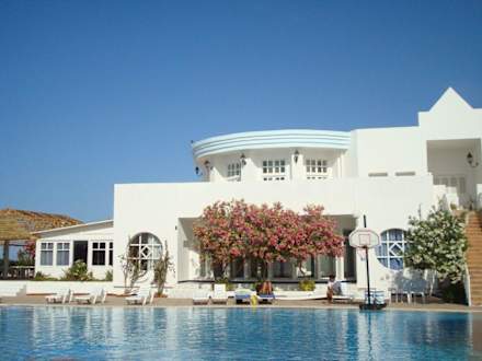 Vue, depuis la piscine principale, de l'un des deux appartements privés de l'hôtel