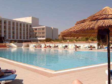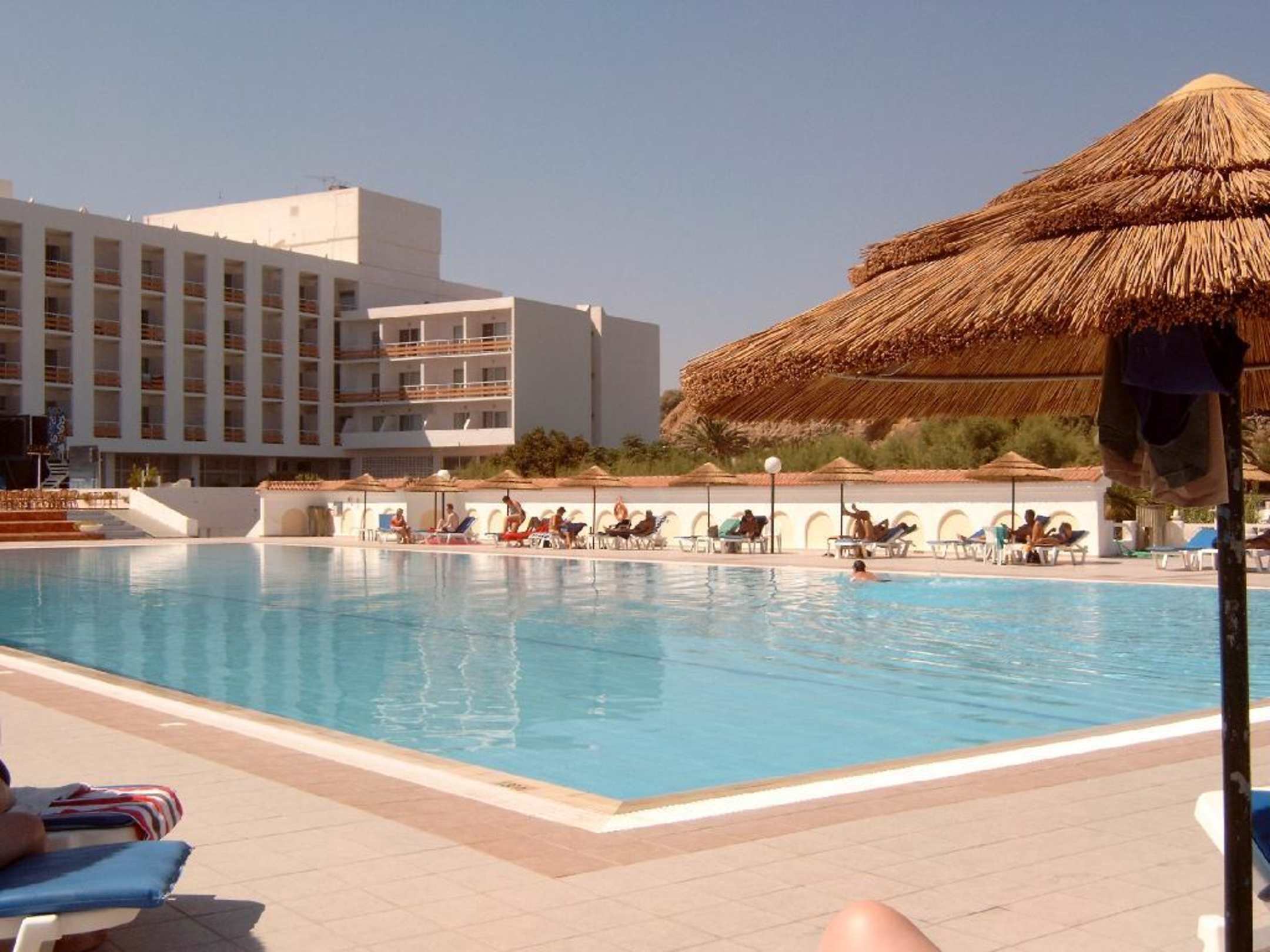 B. Poolanlage des Eden Roc HotelPoolbereich des Eden Roc Hotels in Kalithea auf Rhodos mit Hotelansicht.