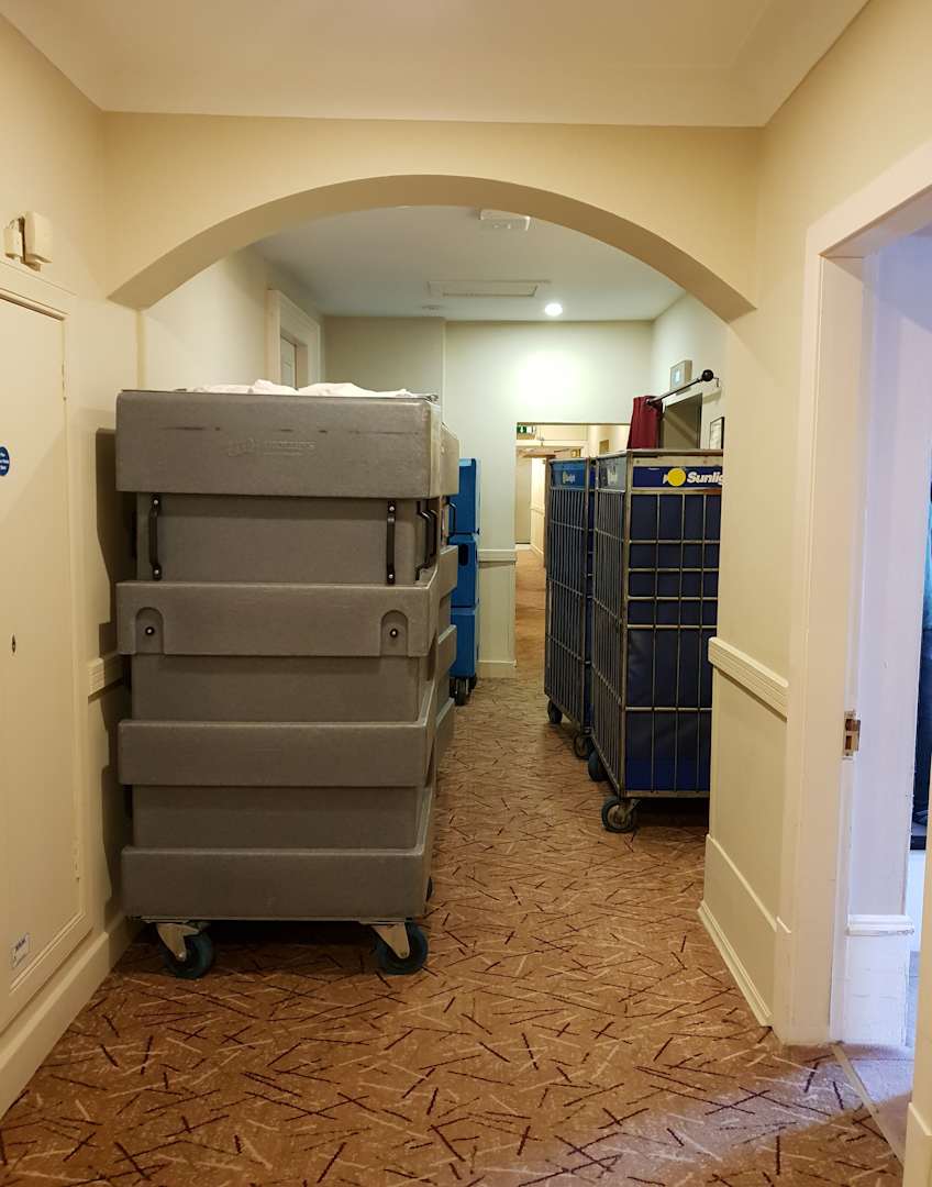 Riesige Container vor unserem Zimmer, durch die wir uns fast zwängen mussten.