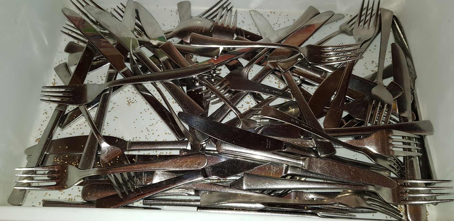 Besteck musste meist selber aus dieser SAUBEREN Kiste genommen werden. Keine Löffel !