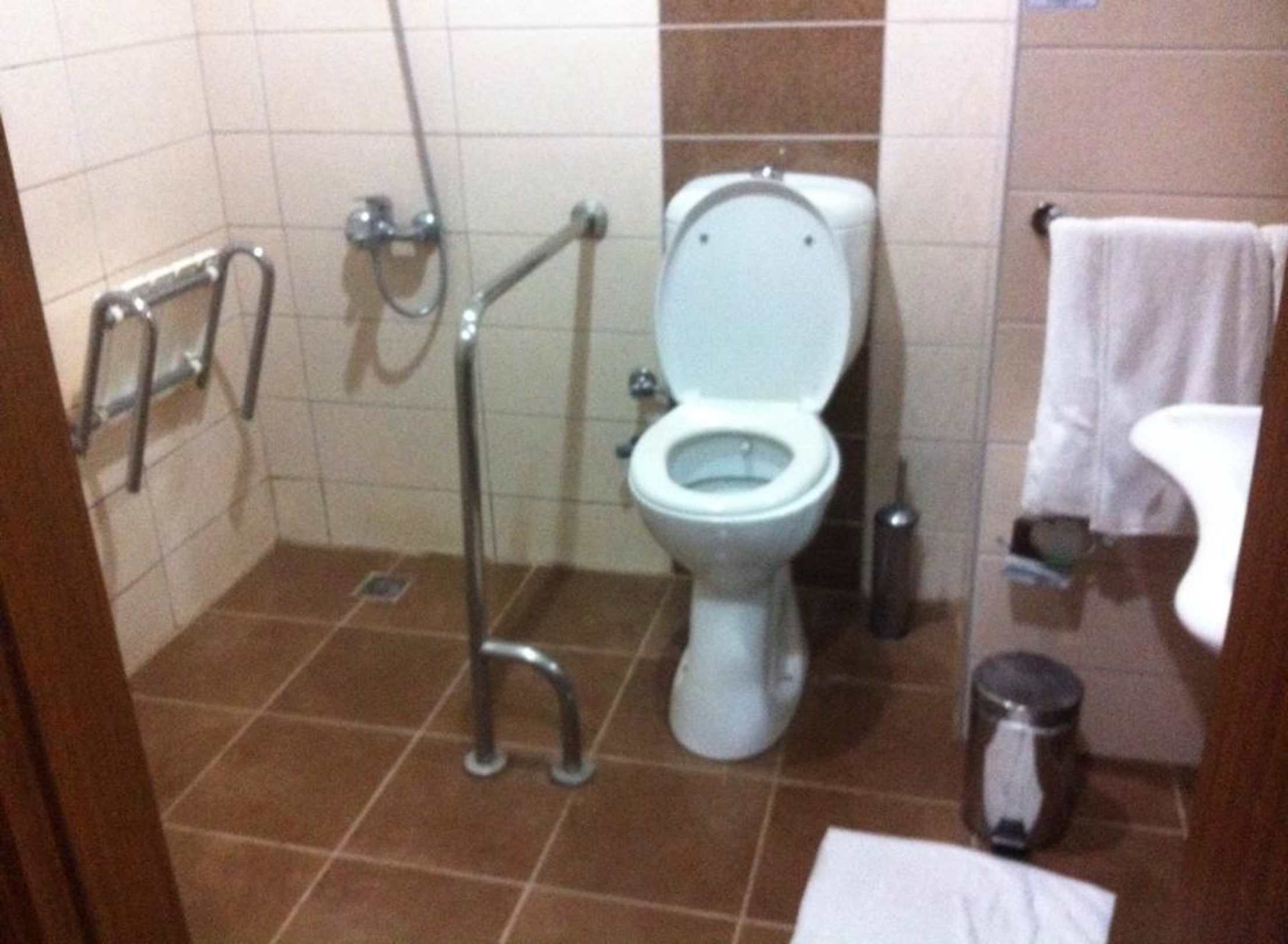 Iemand douchen, iedereen nat, badkamer onder water