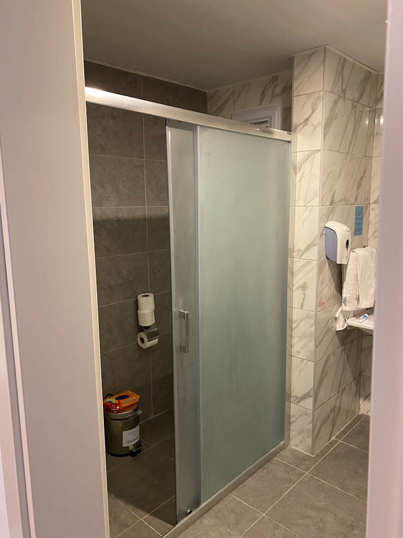 WC-Trennwand mit Öffnung zur Decke und keine WC-Tür