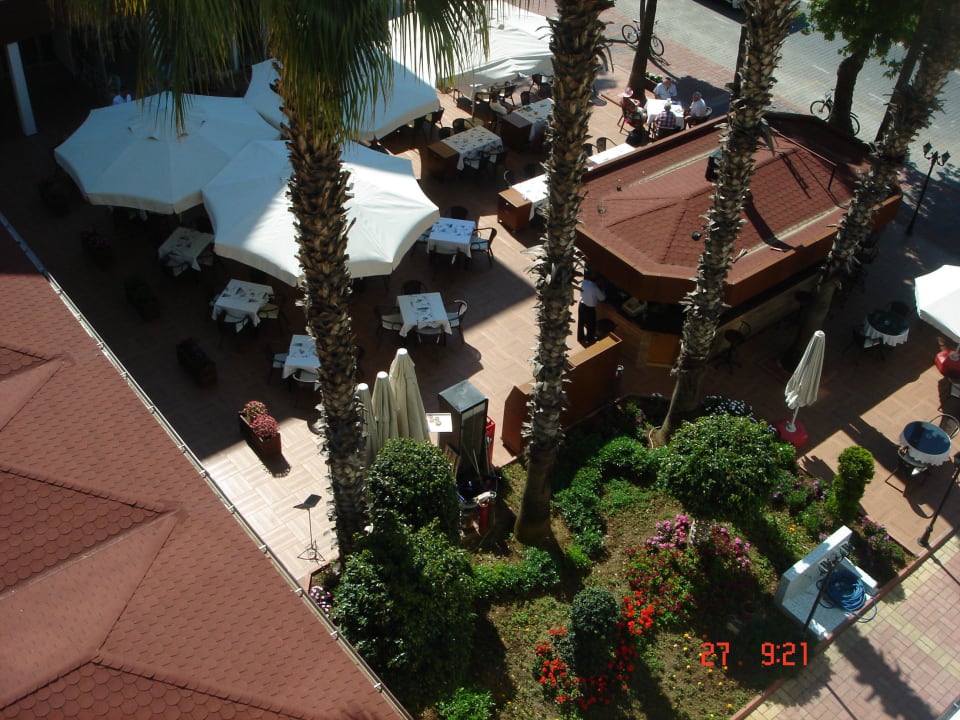 Aussicht vom Balkon auf die Aussenbar des Hotels. Alle Getränke und Speisen mußten sofort bezahlt werden (keine Abrechnung beim Check-Out wie sonst in anderen Hotels üblich)