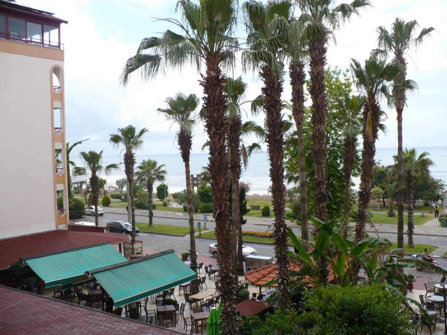 Przed hotelem bar, a za ulicą plaża
