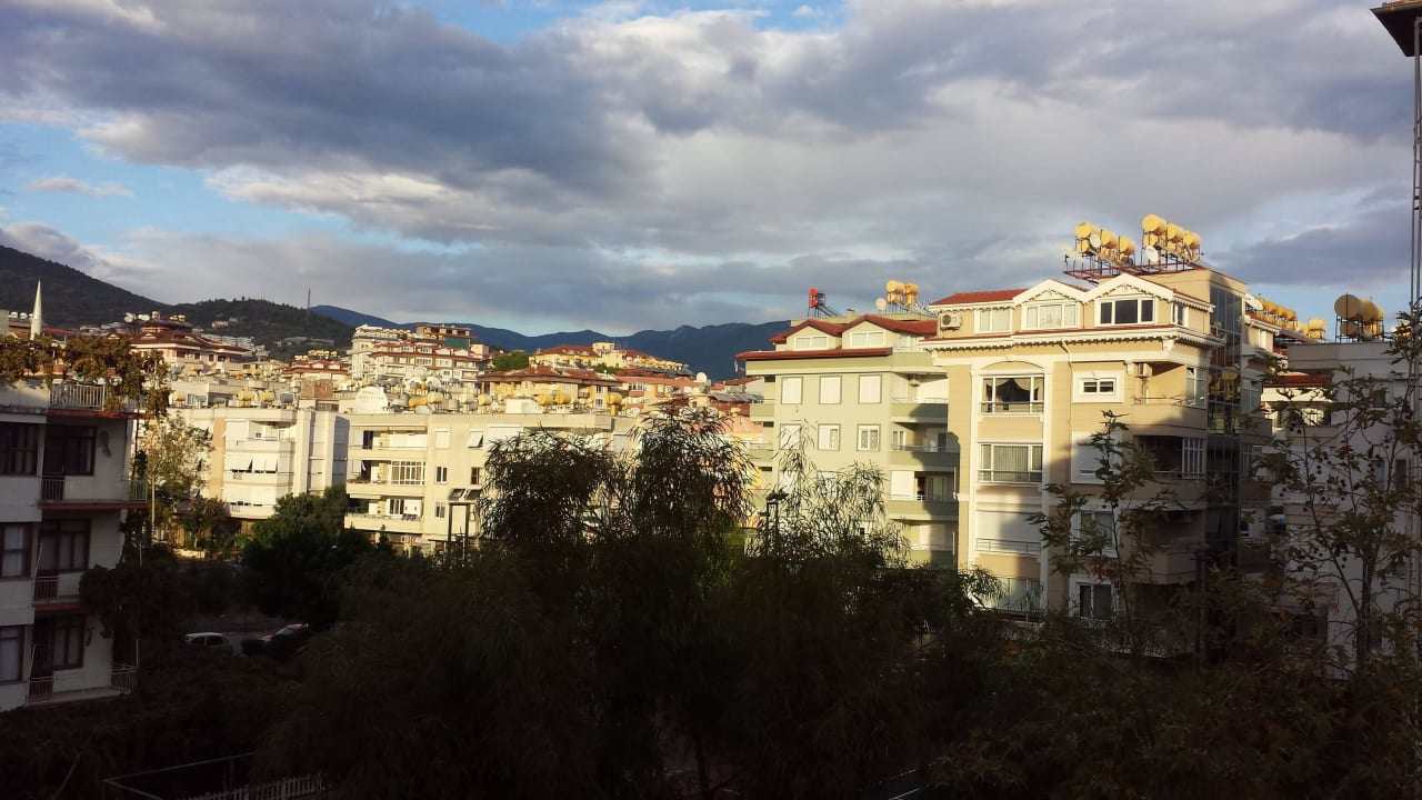 Blick vom Hotelbalkon zu den Bergen