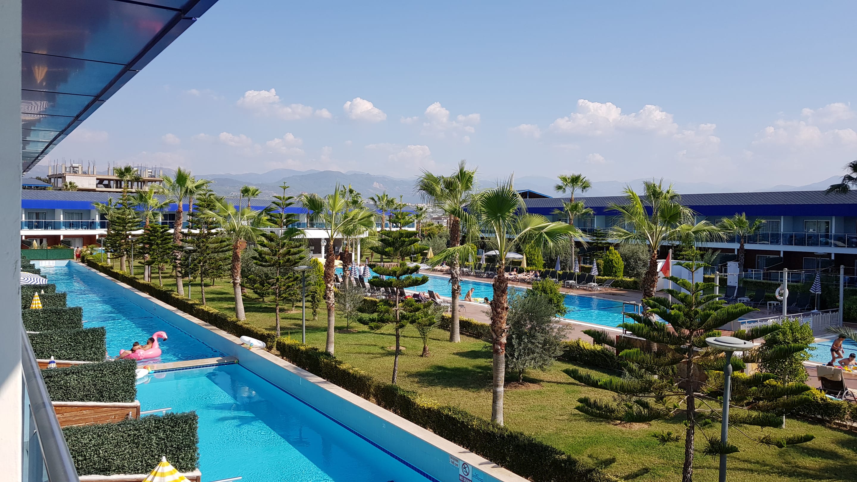 Blick vom Zimmer zum eigenen Pool.