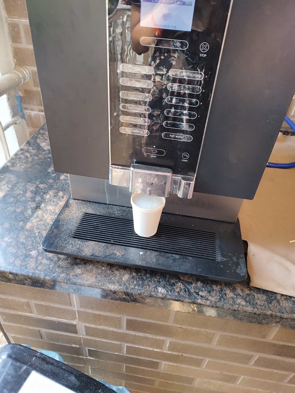 GastroMeistens gab es keine Tassen und man musste morgen schon aus einem Pappbecher seinen Cappuccino trinken.