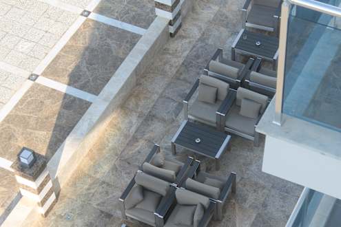Sitgelegenheit vor dem Hoteleingang