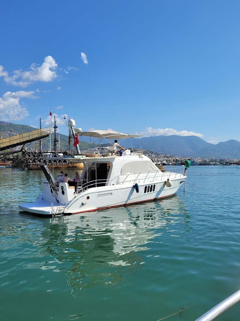 Ein Fahrt mit dem kleine Schiff in Stadt Alanya