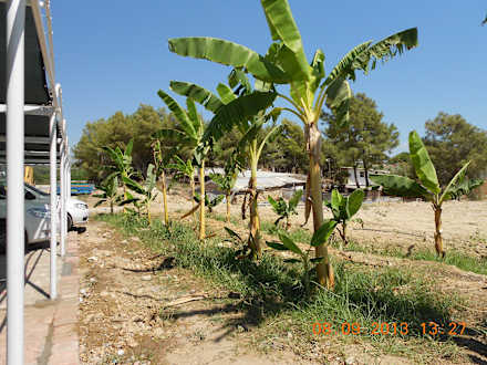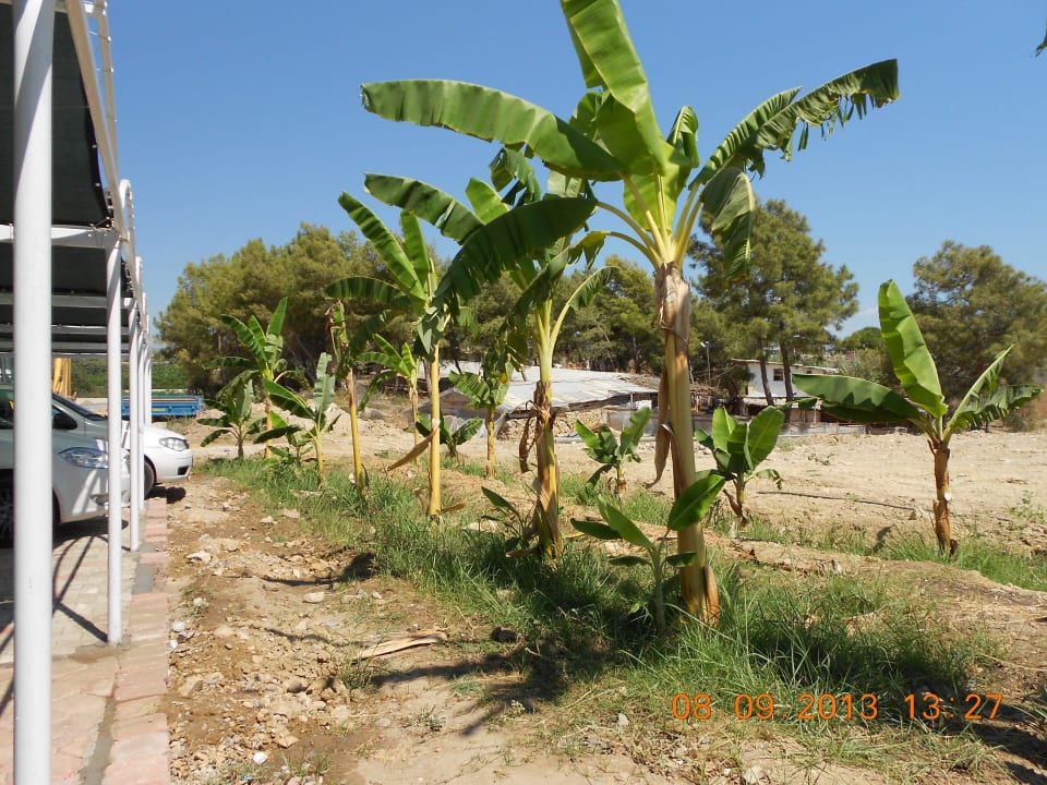The banana trees in front of the hotel