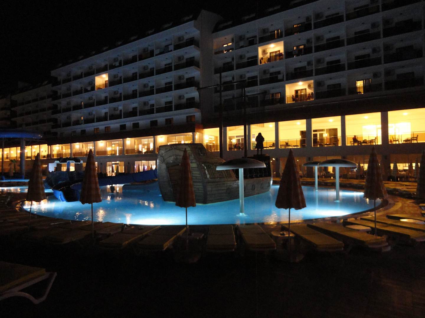 Piratenschiff mit Kinderpool bei Nacht