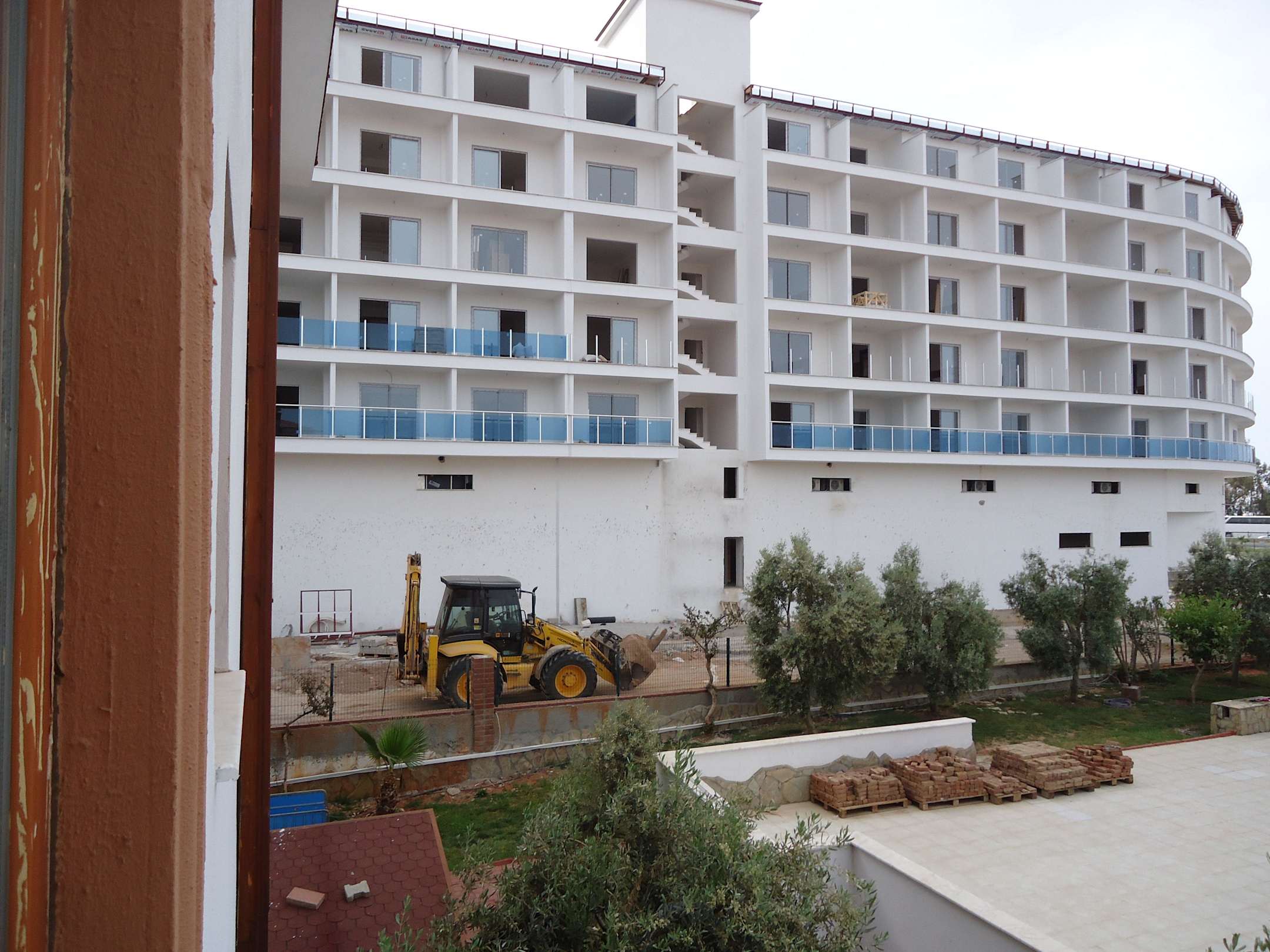 direkt aus meinem Zimmer fotografiert - die neue Hotelanlage, die in unmittelbarer Nähe gebaut wird. Hier auch mein "geliebter" Radlader, der mich pünktlich jeden Morgen um 8 Uhr Ortszeit weckte