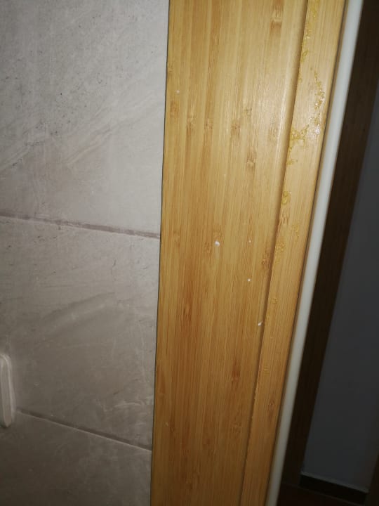 Zahnpasta reste an Spiegel und Tür Rahmen