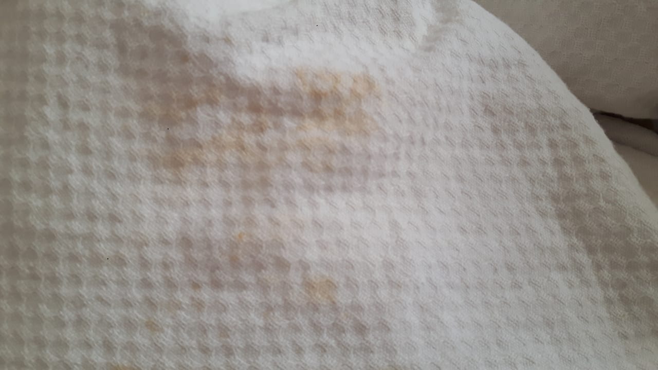 Die gesamte Bettwäsche war voll mit Haaren und Blut und sonstigen Flecken und wurde trotz täglicher Beschwerde nicht getauscht