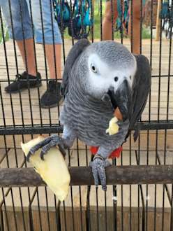 Cico, er kann sogar sprechen und freut sich über Obst