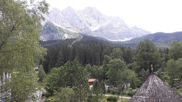 Doppelzimmer" Zugspitzblick" links im Bild die Gondelstrecke.