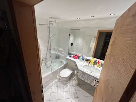 Badezimmer im Familienzimmer mit Zugspitzblick