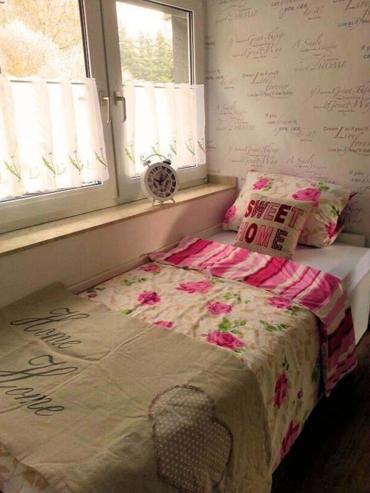 Einzelzimmer im Dachgeschoss und Blick in den Wald