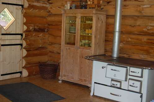 Gemütlicher Holzofen in der Blockhütte