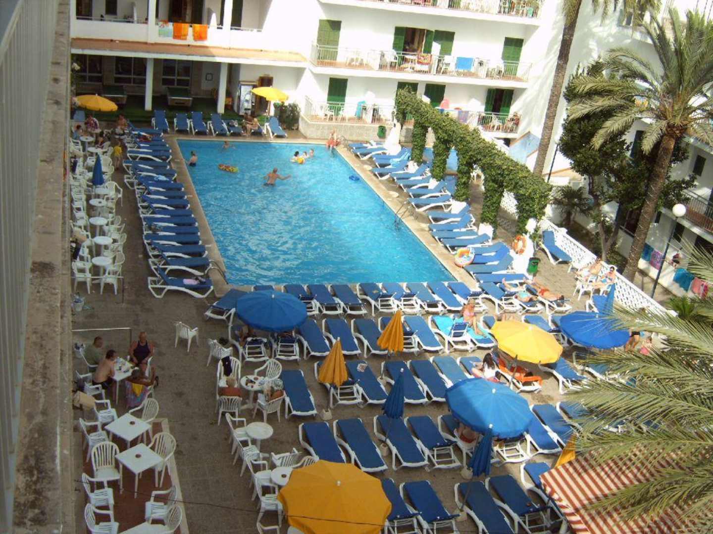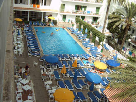 Urlaub, super der Innenhof Hotel AlcudiaSo soll man sich in diesem Haus entspannen, jeder Winkel des Hofes mit einer Liege ausgefüllt