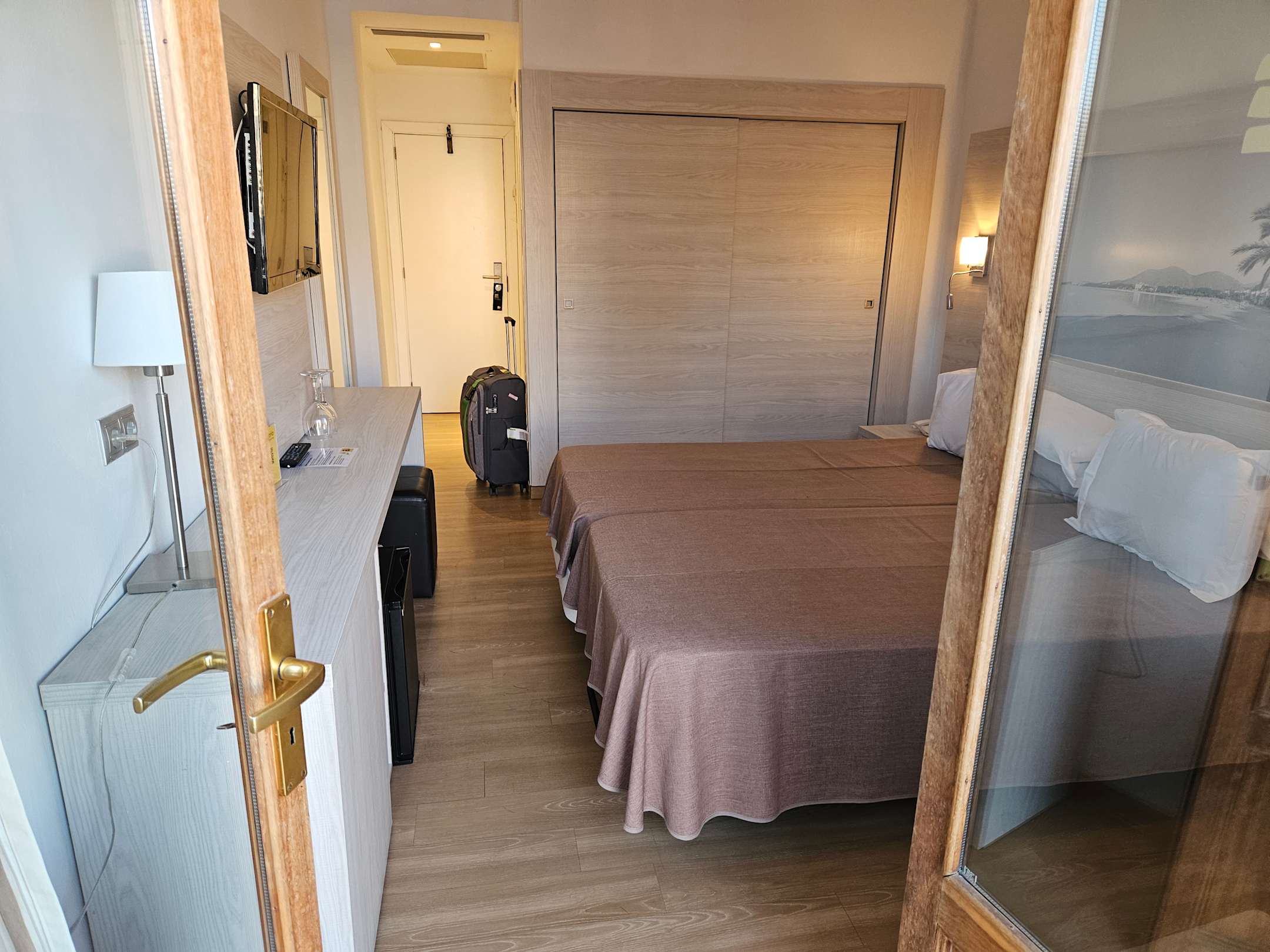Blick in das Doppelzimmer vom Balkon aus