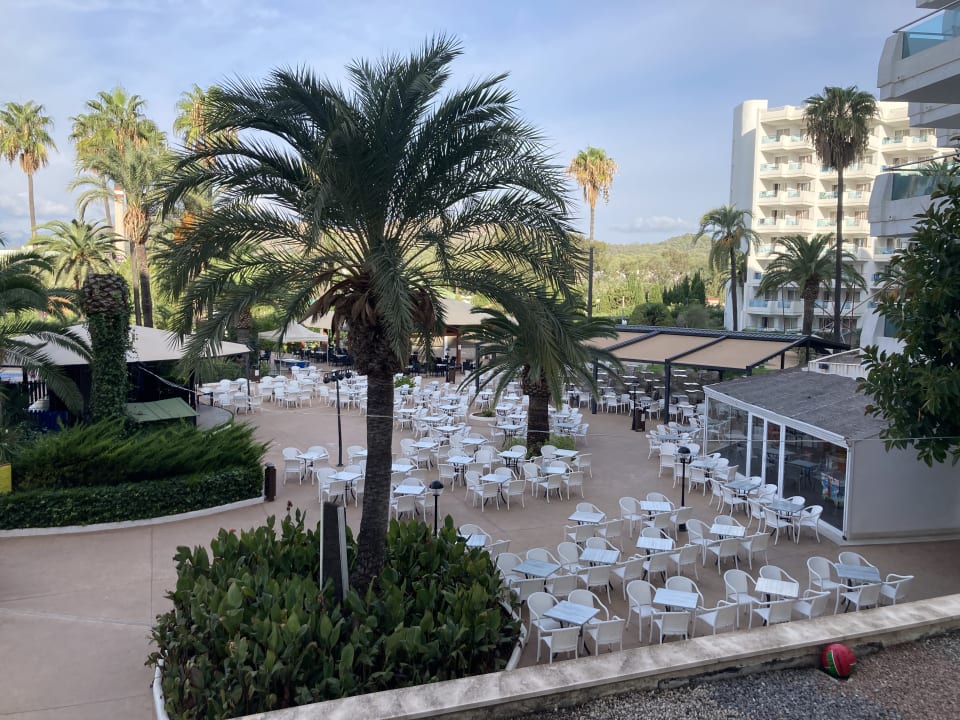 Innenhof. Links 3 Pools. Unglaublich laut abends.