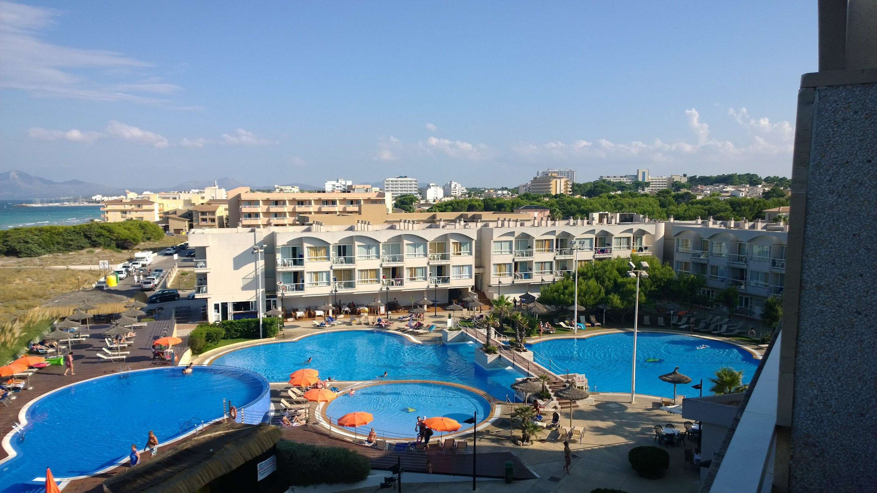 Blick vom Balkon auf die Poolanlage