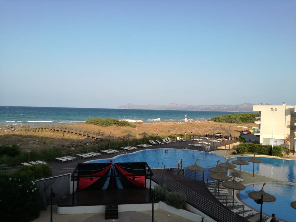 PoolBild vom Balkon im 2.Stock in Richtung der Pools bzw des Stegs von der Anlage zum kilometerlangen Sandstrand
