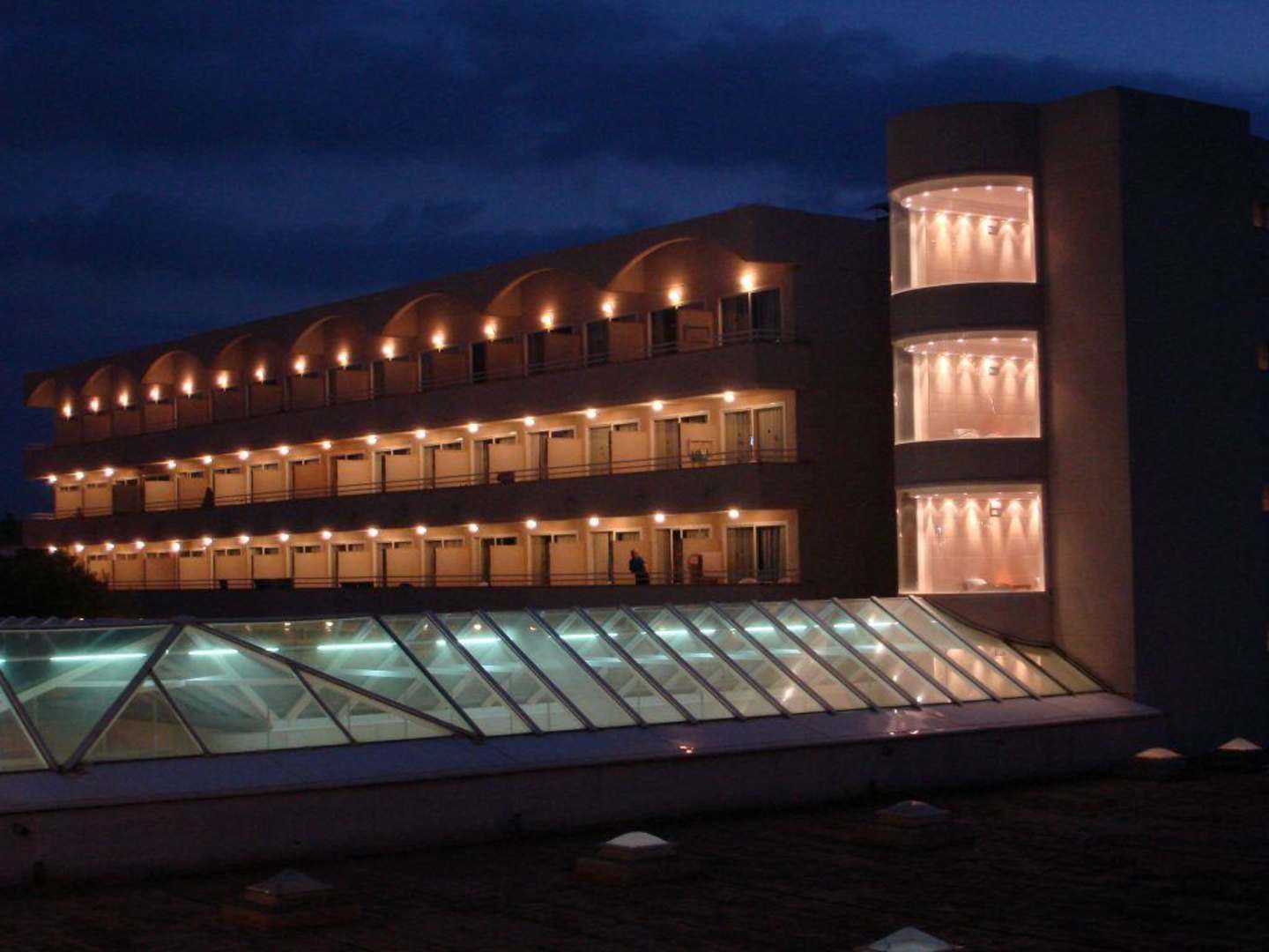 Hotelansicht im Abendlicht