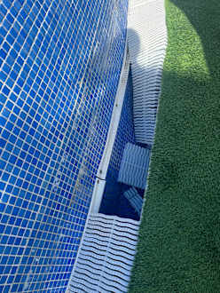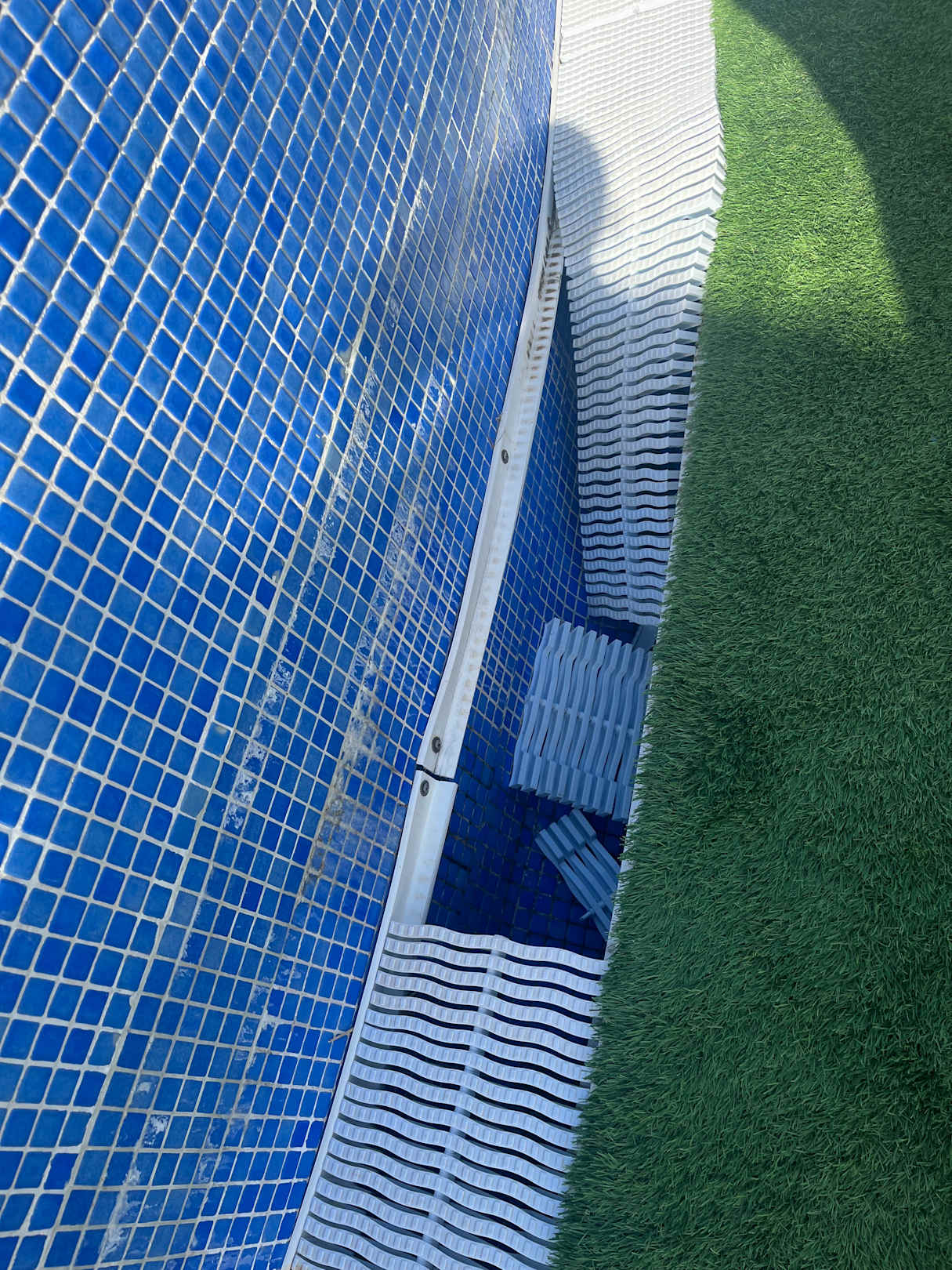 Loch in der Poolumrandung, bis zur Instandsetzung vergingen mehrere Tage.