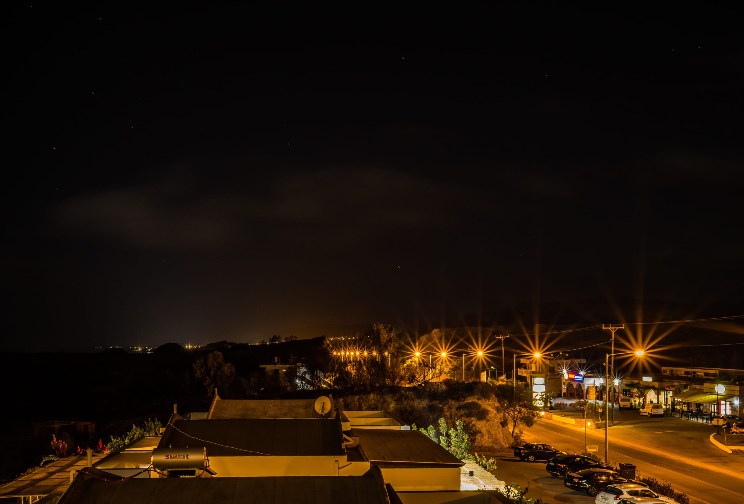 Ausblick am Abend vom Zimmer zum Supermarkt