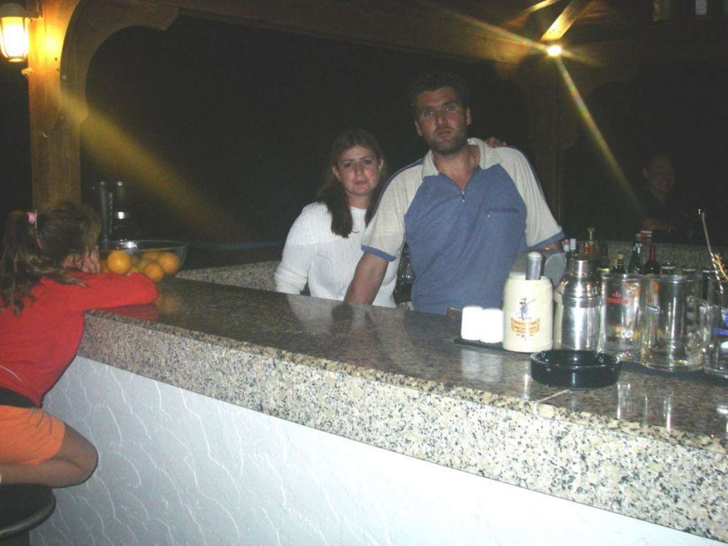 J. mit seiner Frau S. und Tochter Z. an der Poolbar