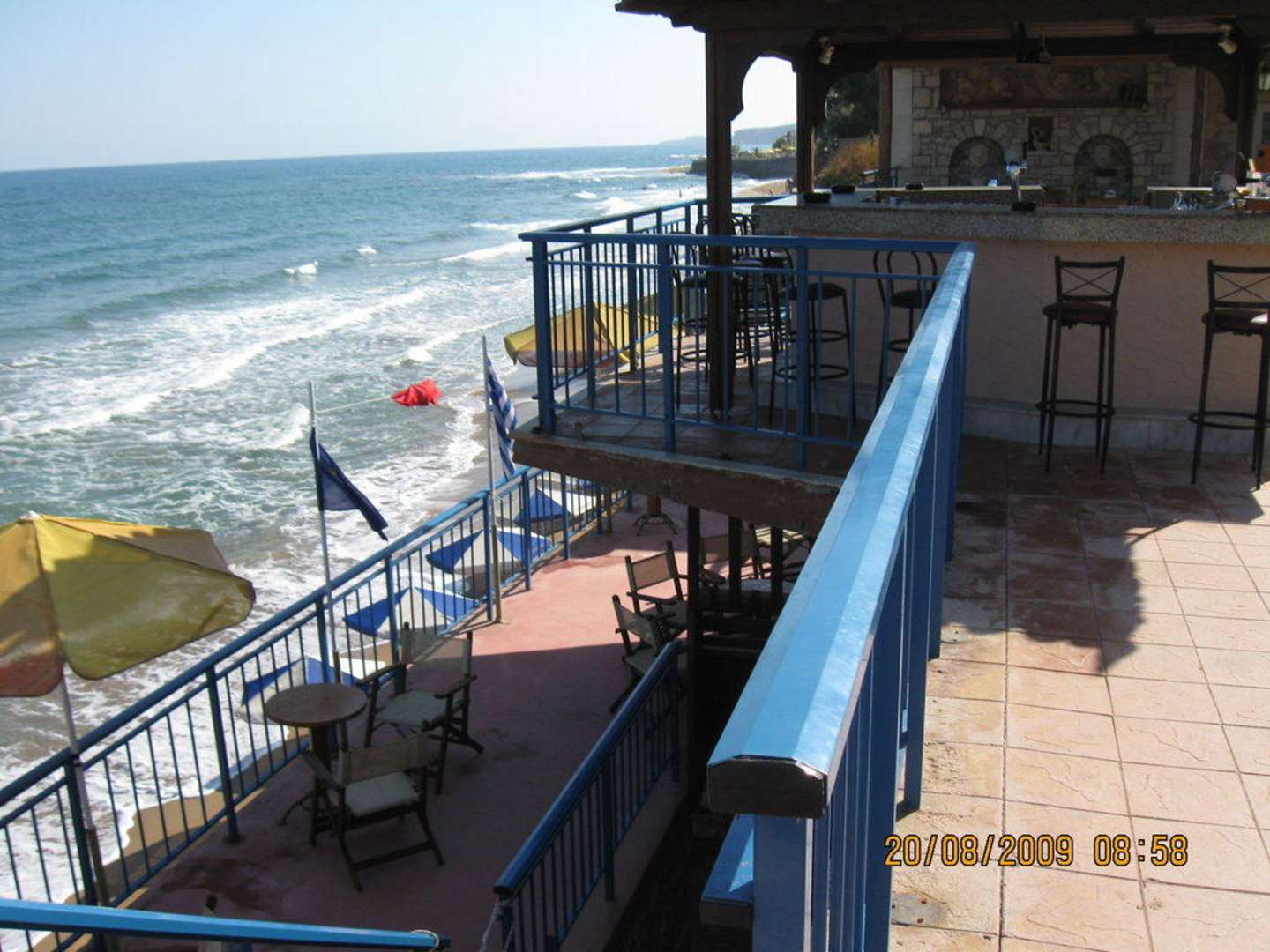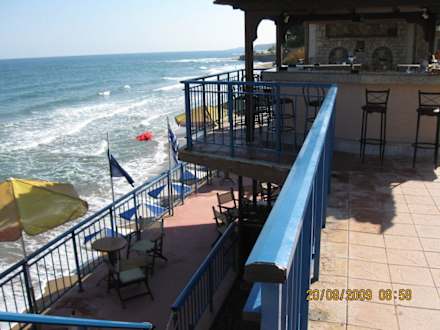 Blick von der Poolterrasse / Bar auf den Balkon oberhalb des Strandes.