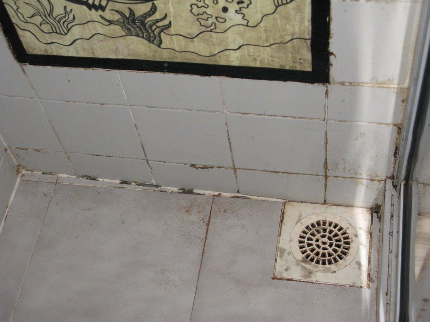 Duschablaufbeschriebener, nicht gereinigter Duschablauf