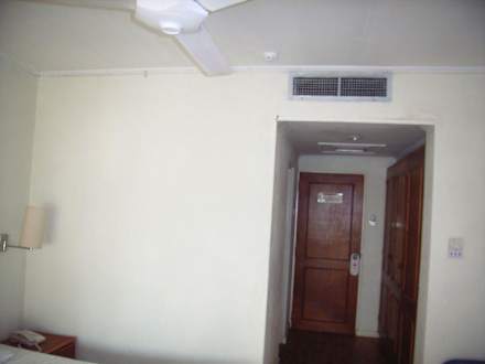 Einfaches Standard Doppelzimmer Neben des Eingangsbereichs , rechts davon bei der Eingangstür , befindet der " Einbau Kleiderschrank "