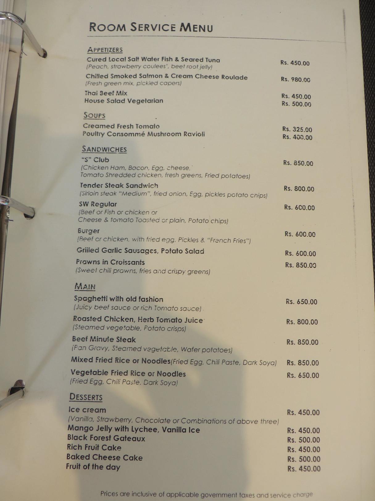Room Service Karte