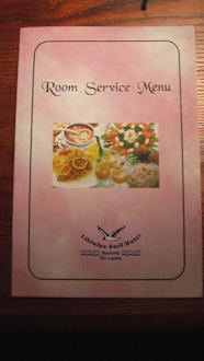 Room Service Menuekarte Auf dem Zimmer liegt eine Room Service Menuekarte auf , wo man sich das Essen bringen lassen kann .