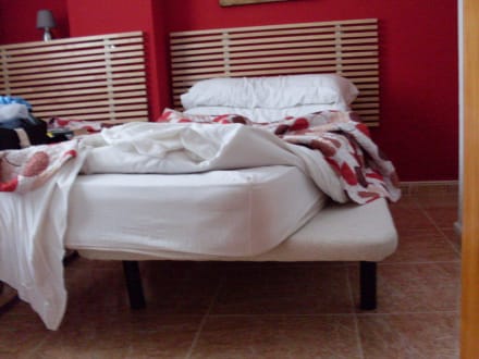 die zwei Betten im Schlafzimmer. Die Überdecke ist auch Bettzeug.