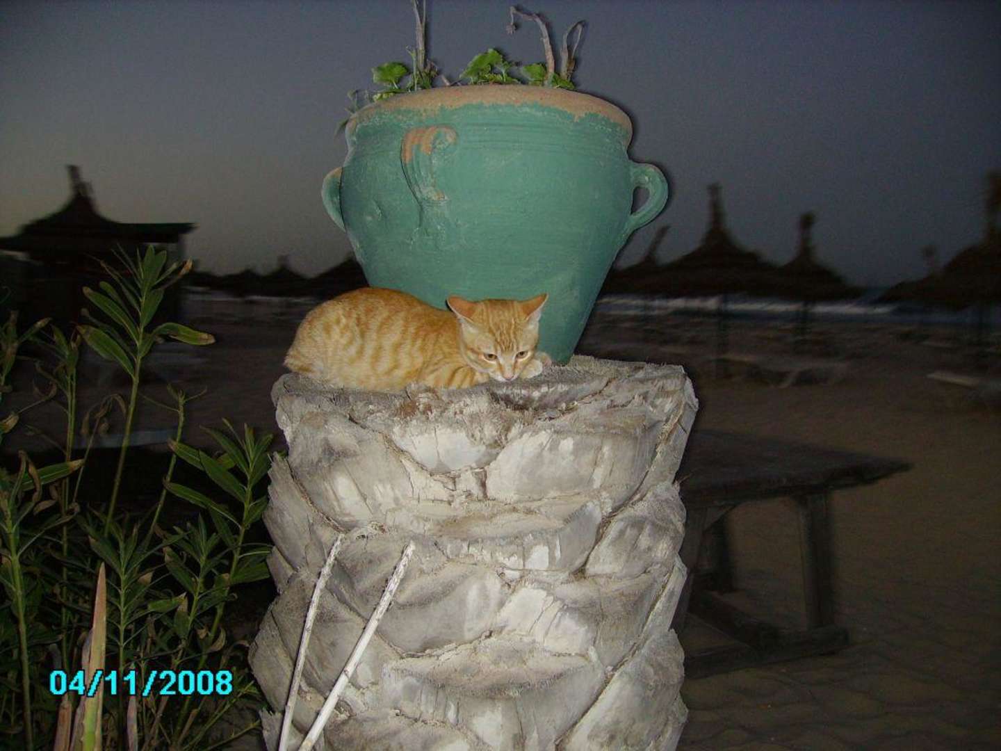 netter Schnappschuss mit Katze am Strand