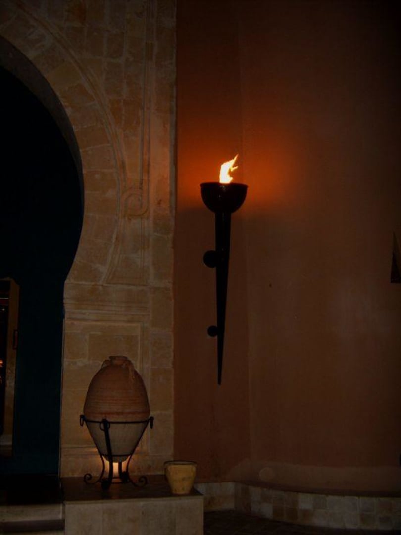 Rechte Fackel am Eingang des Hotels