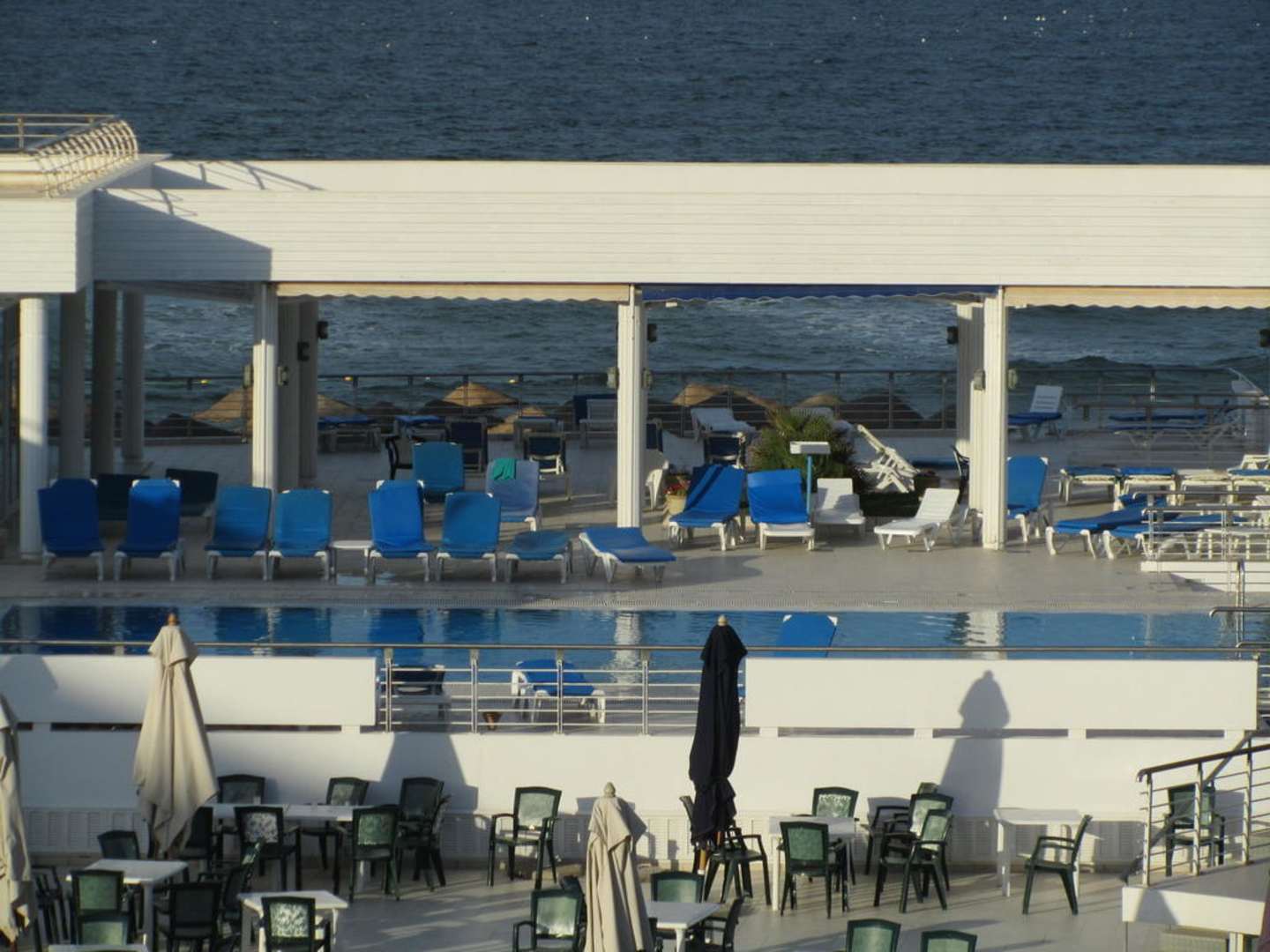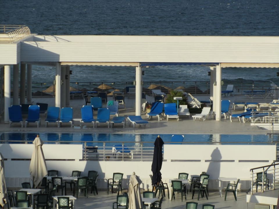 Blick auf den oberen Pool und die Sonnenterrasse
