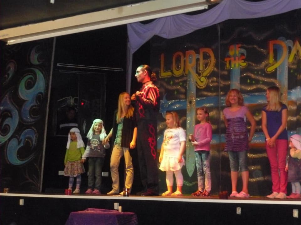 Vorführung der Kinder auf der BühneDie Kinder übten mit dem Animateur "Giro" einen Tanz den sie dann gemeinsam abends auf der Bühne präsentierten.